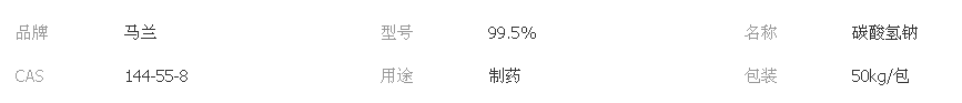 化學名:碳酸氫鈉,別名:小蘇打、蘇打粉、重碳酸鈉